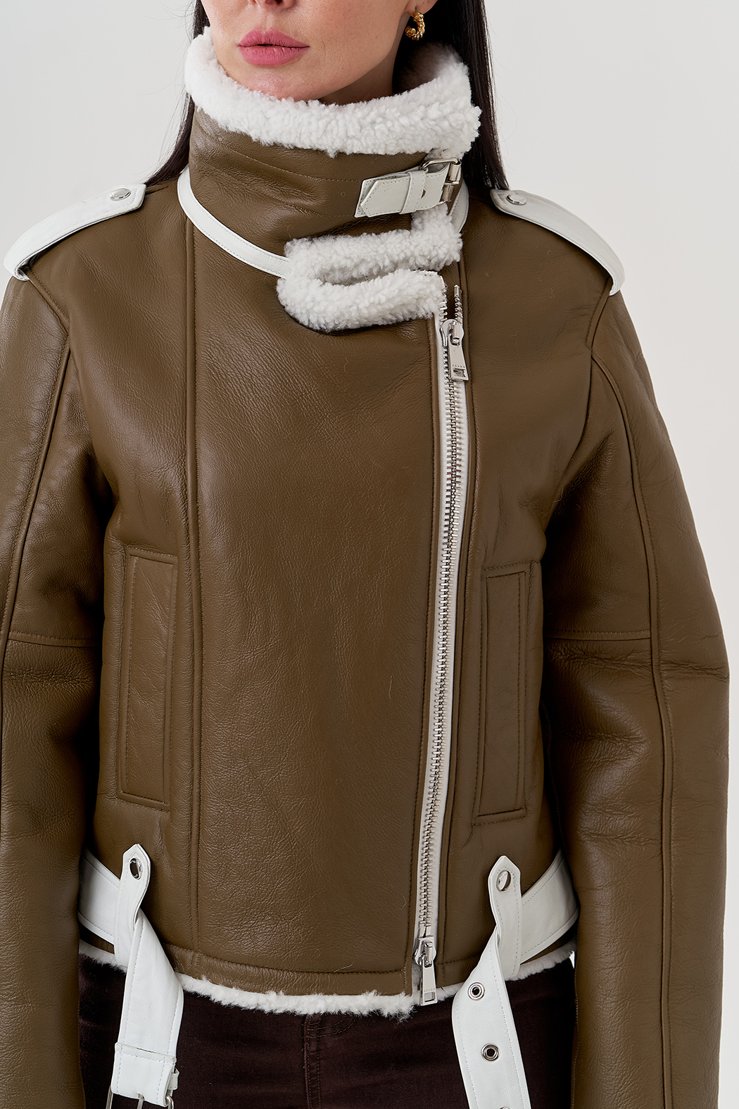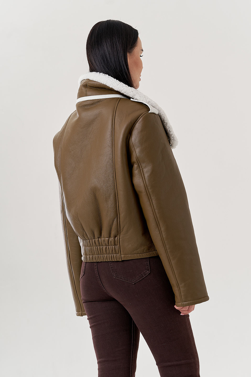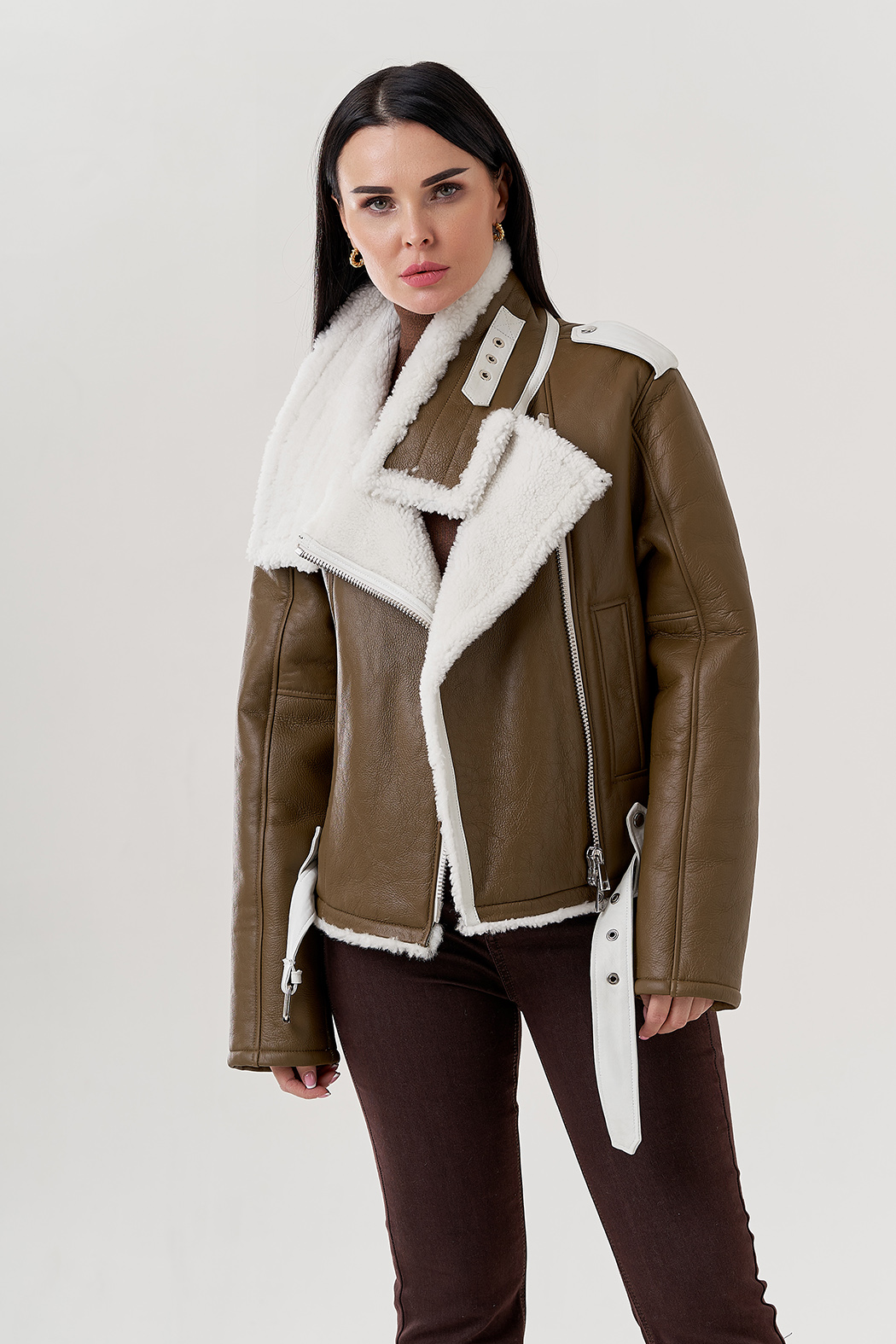 Крой воротника - отложной , отделка овчина белый