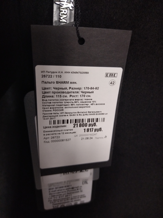 Для жителей Коломны у нас действует беспроцентная рассрочка и кредит на выбранный товар — Пальто с английским воротником артикул kolomna26722. Если у вас остались вопросы напишите или позвоните нам, и мы на них ответим.