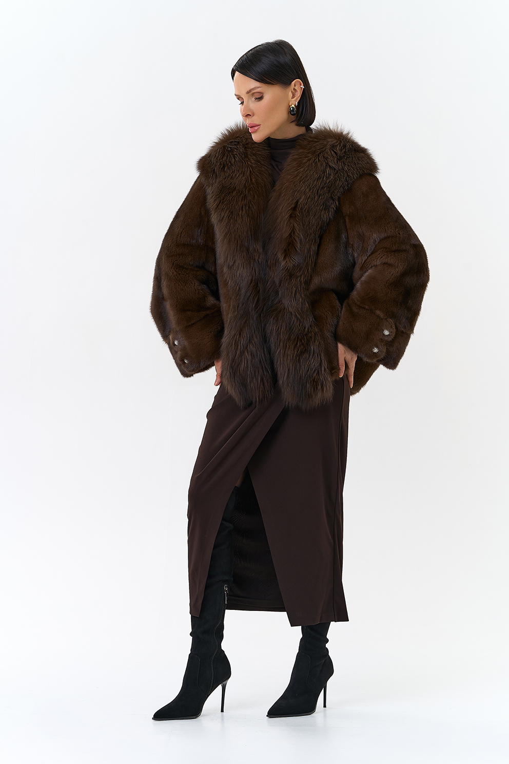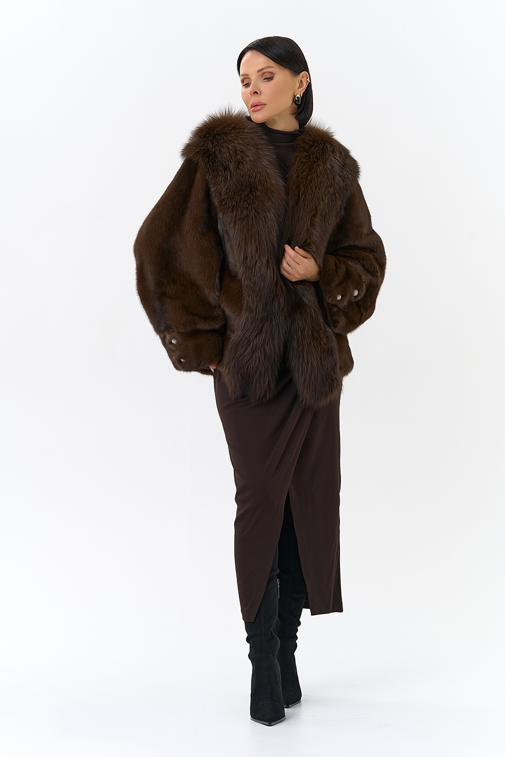 Тип ворота - V- образный, отделка чернобурка
